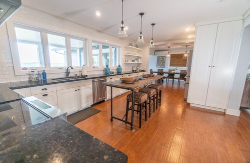 Hukilau Beach and the blue waters of the Pacific Ocean on one side and the Ko'olau mountains on the other, Hale Lani lives up to its name as the “House of Heaven.” The perfect choice if you’re traveling with a large family or a group of friends, this home is one of only two on the entire beach that is licensed for vacation rental, NCU 90/TVU -0043. Sitting on one of the biggest beachfront properties on the bay, the 2/3 acre and 4200 square foot estate feels completely private from the surrounding properties. Recently rebuilt and renovated, the home comfortably accommodates 14 guests in six bedrooms. All new furniture, beds, appliances, fixtures, A/C units, and linens, this home is as beautiful and fresh as it is relaxing. The kitchen is stocked for the gourmet chef in the group, with over 20 feet of counter space and views looking straight out to the water. The sunrise should not be missed from the balcony upstairs and the beautiful new gazebo that sits overlooking the beach will keep you relaxed and content for hours.