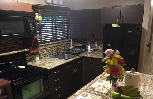 The Kitchen is stocked with appliances for you to cook and prepare meals.