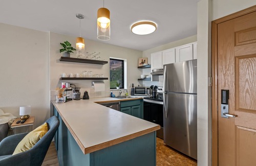 UPDATED FOR 2023 - We're excited to share that we've completely remodeled the primary bathroom in 2023. New tile on floors and walls, new vanity, and a new shower make this space much more inviting. We've also upgraded to a modern Air Conditioning system. Air Conditioning is now in both bedrooms and the living room, which allows you to cool and dehumidify the condo. The old window A/C units photographed havebeenremoved.