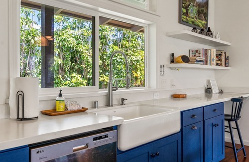 Upgraded in 2019, Hale Ka Mahina isn't your average vacation rental, Hale Ka Mahina is tucked away on a side street between Hanalei Bay and Hanalei town. Easily walk or ride bikes to the beach and town when you want to check the surf or grab a coffee at the Hanalei Bread Co. You won't need to drive unless you are off to explore the island's many beaches.