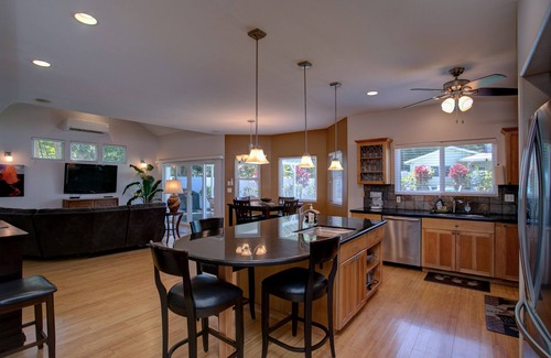 The Umauma Experience Grand Melemele Home is Your Hawaiian Destination. It is located near Hilo, but far from The Real World. At 3300 sq. ft 3 beds & 3 bath, it offers plenty of room for everyone to enjoy times together & to have their own space, if needed the downstairs office has a sofa bed to meet your needs.