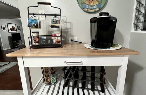 A starter kit with Hawaiian coffee, sugar/creamer, local fruit and Hawaiian cookies will be waiting for you in the fully outfitted kitchen. A Keurig, drip pot and French press are provided for your coffee needs. We have everything you need for those home cooked meals whether on the stove, grill, or in the crock pot for after those long work days or long days exploring the island. This is a turn-key unit stocked with all of the essentials of extended living: towels and linens, 52" Fire TV with free WiFi ready for your log-in to stream all of your favorite shows, beach towels, beach chairs and cooler, reusable shopping bags, and cleaning supplies. You will be provided with a starter kit of toilet paper and paper towels, dishwasher, dish and hand soap, laundry detergent and dryer sheets, and shampoo and conditioner for your convenience.