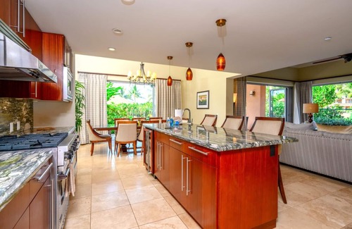 Vacation in ultimate comfort in this expansive Oceanfront three-bedroom, three-bathroom villa. This exclusive Ali'i Suite features the finest finishes and elegant decor, creating a sophisticated retreat. Enjoy al fresco dining on your private garden lanai, perched above the resort's beautifully landscaped grounds. Whether you're lounging on the chaise chairs, socializing at the kitchen bar, or grilling fresh Mahi Mahi on your private outdoor kitchen with a premium Viking BBQ, you and your Family will be immersed in total vacation luxury.