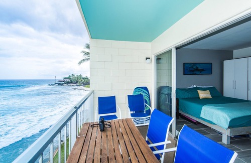 Remodeled fourth floor unit in Makaha's ONLY Beachfront Condo! The other condos you will find are located about 2 miles to the South. Our studio has been completely remodeled, and is located on the cool side of the building, with Ocean and Sandy beach views.