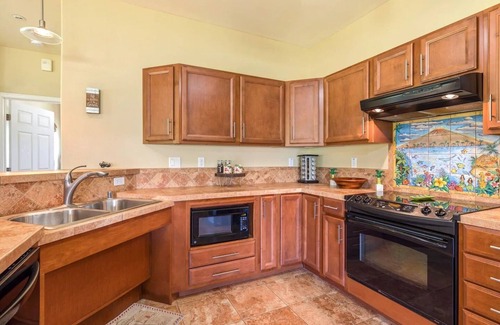 When you enter this hale you will notice the lovely tropical furnishings and décor, shiny African mahogany floors, large fully equipped gourmet kitchen with top of the line appliances, and dining area. Not to mention the newly furnished and comfortable lanai with 2 loveseats, 2 chairs and a dining table that sits 4. The spacious living room includes a Smart TV and plenty of seating area.