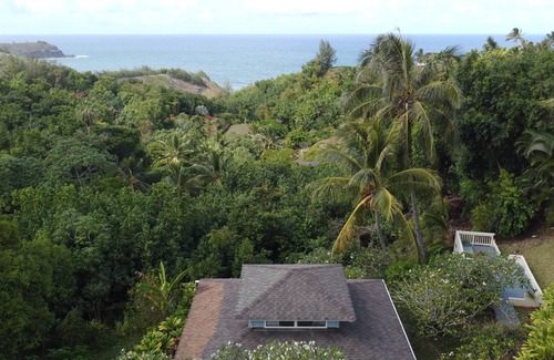 Welcome to Kauai's magical North Shore!!! This 3 acre property with house and guest house offers pristine privacy and ocean views with a private path to a secluded beach. Kauai Vacation Hideaway also nurtures dozens of fruit trees that guests can pick from. Located just east of the adorable town of Kilauea, this property is very close to the many incredible sights of the North Shore yet enjoys more sun and blue sky than most northern areas because it is not right at the base of the breathtaking mountains where most of the rain falls.
