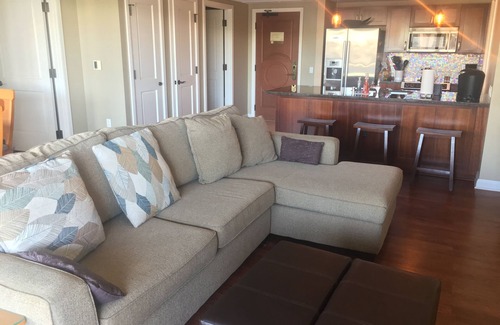 My 2-bedroom, 2-bathroom suite is on the top floor (7th) of the Honua Kai Resort and Spa, a beachfront condo resort on Kaanapali Beach. While sitting on the spacious lanai you’ll enjoy a breathtaking view of the beach and the nearby island of Molokai. Open the full-wall accordion glass doors and your entire living room becomes part of the Hawaiian outdoors. The best part is that I'm north facing, so that the Lanai is shaded most of the day for full enjoyment.