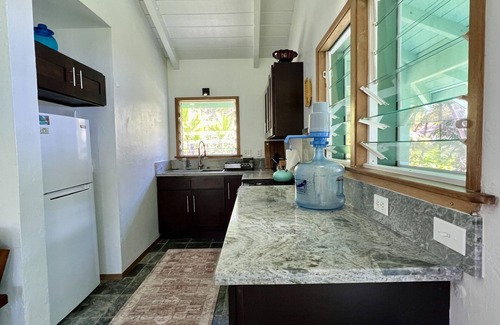 Rainbow Dreams Cottage is the perfect eco-retreat, where you can really get away from it all. We are entirely solar-powered, so alternative energy serves your needs with a few limitations to this rental. Because we are off the grid, there is limited cell service (2 bars) and no WiFi - just the beauty and the power of nature, and the sights and sounds of the ocean. Also, we have catchment water from the rain, so we advise using bottled water, or free Pahoa town water available at roadside taps, for cooking and drinking. Full-grid services are just minutes away, up the road or in the nearby town of Pahoa.