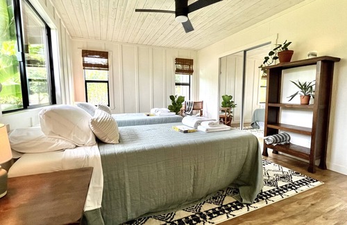Situated on a 20-acre farm, Hale Makana Kamalei is an expansive 4-bedroom house with an open floor plan. Explore the island as locals know it.