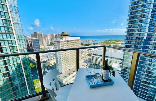 "WELCOME TO SKY ALA MOANA" Luxury condominium built in 2023 conveniently located in Ala Moana. Enjoy beautiful views of city, mountain and sparking ocean. 1br/1ba /1assigned parking with Full kitchen, washer & dryer plus Washlet, Japanese electronic toilet. Great amenity including heated salt water pool, hot tab, lap pool, sauna, massage spa, gym, playground, meditation garden and BBQ. Experience the perfect blend of sophistication and convenience in this exceptional property.
