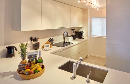 Inside, you'll experience a level of luxurious and harmonious design rarely found in vacation rentals. High-end integrated appliances in the kitchen; a Split King bed in the Principal Bedroom with Winkbed hybrid mattresses and independent, remotely-adjustable bases; the Guest Bedroom platform King has an Ikea Sultana foam mattress and memory foam topper; you'll find natural fiber bedding, down and foam pillows throughout; a stand-alone spoon tub and two walk-in rainshowers in the baths, which also feature large-format ceramic tile; two HDTVs, including a 65" smart tv and a gorgeous sound system all conspire to relax and indulge the guest.