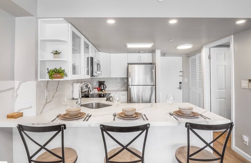 - Fully equipped with a toaster, coffee maker, rice cooker, blender, kettle, pots, pans, silverware, cookware, and dishes.
